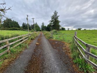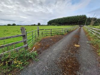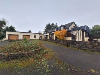 Large standalone two storey house extending to c.200 m² (2250 sq ft) approached by a lengthy driveway and incorporating a double garage, shed and loose boxes on a c.0.41HA (1acre) site.