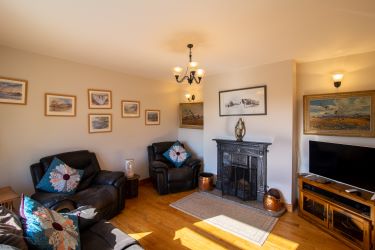 • Living room: Cast Iron Fireplace, Solid Oak Floor, Curtains